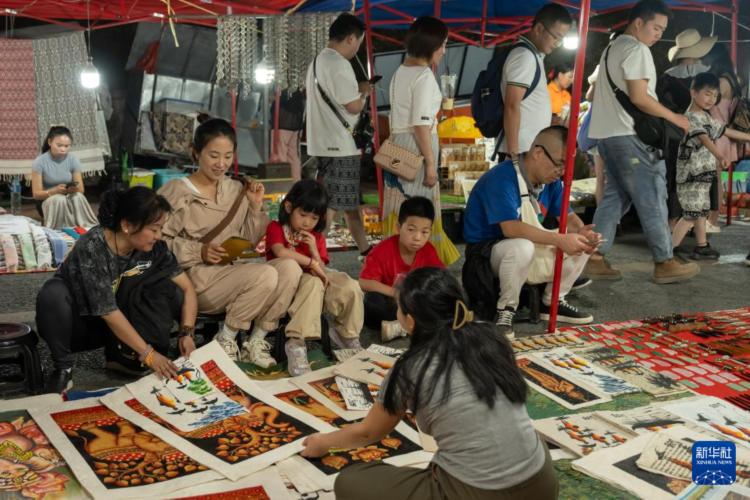 2月16日,游客在老挝琅勃拉邦夜市上购买当地传统手工艺品。 2024年,中老铁路国际旅客列车迎来自2023年4月13日开通后的首个春运。不少游客选择春节假期乘坐中老铁路国际旅客列车跨境旅行,让老挝沿线旅游业进一步发展升温。 新华社发(凯乔摄)