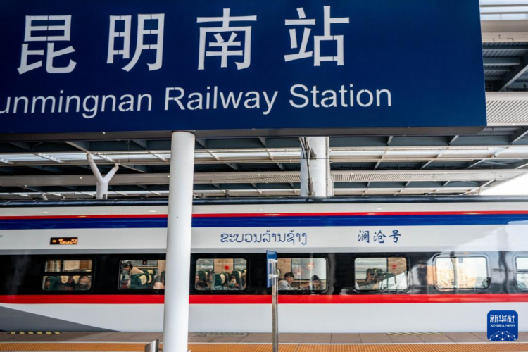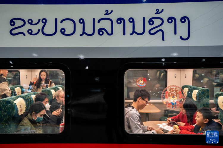 2月14日,中老铁路国际旅客列车从昆明南站发车。 2024年,中老铁路国际旅客列车迎来自2023年4月13日开通后的首个春运。不少游客选择春节假期乘坐中老铁路国际旅客列车跨境旅行,让老挝沿线旅游业进一步发展升温。 新华社记者 胡超 摄