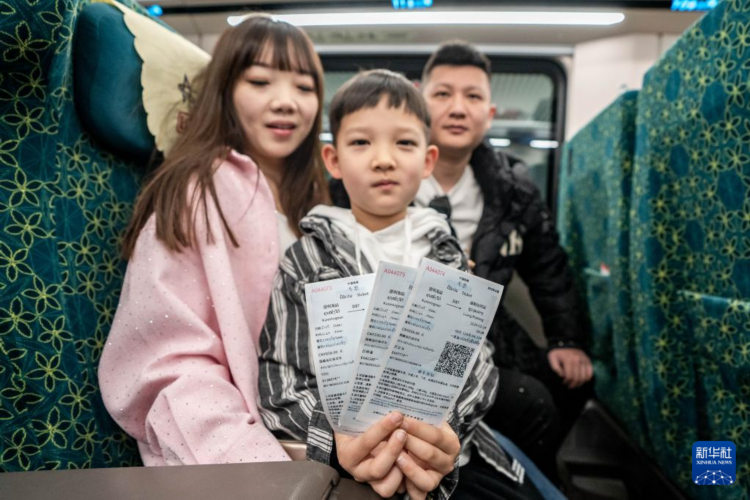 2月14日,在云南昆明,乘坐中老铁路国际旅客列车前往老挝的游客展示购买到的车票。 2024年,中老铁路国际旅客列车迎来自2023年4月13日开通后的首个春运。不少游客选择春节假期乘坐中老铁路国际旅客列车跨境旅行,让老挝沿线旅游业进一步发展升温。 新华社记者 胡超 摄