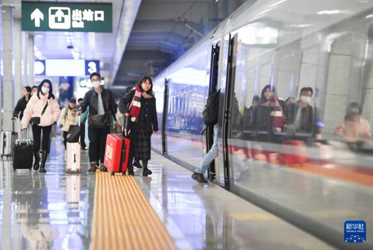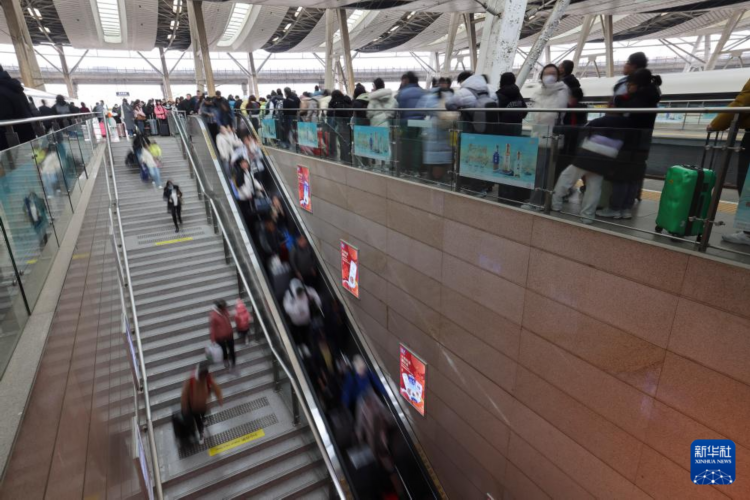 2月17日,旅客在浙江温州南站进站乘车。 新华社发(刘吉利 摄)