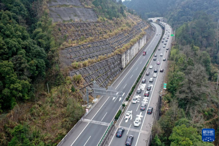 2月17日,节后返程车辆行驶在包茂高速公路广西龙胜段(无人机照片)。 新华社发(潘志祥 摄)