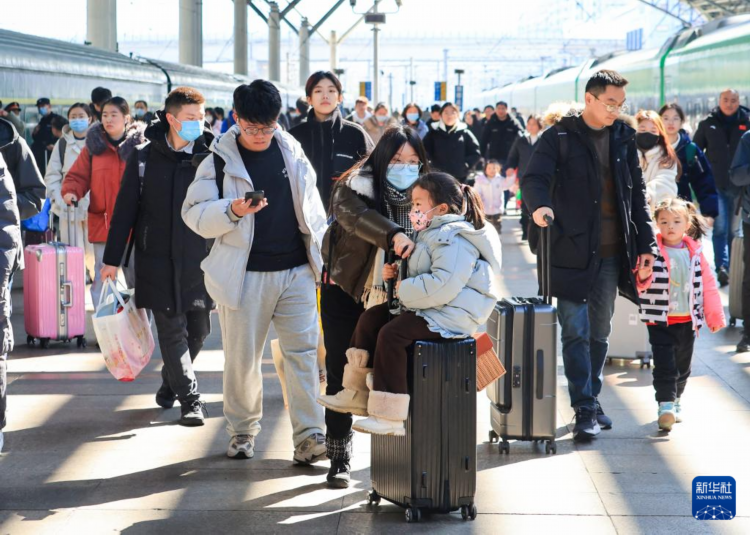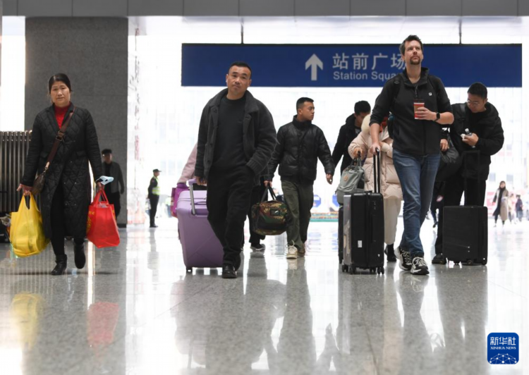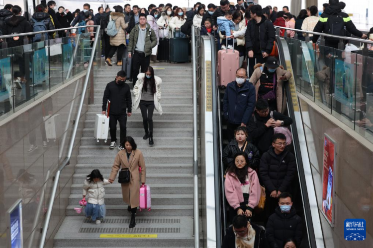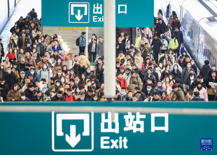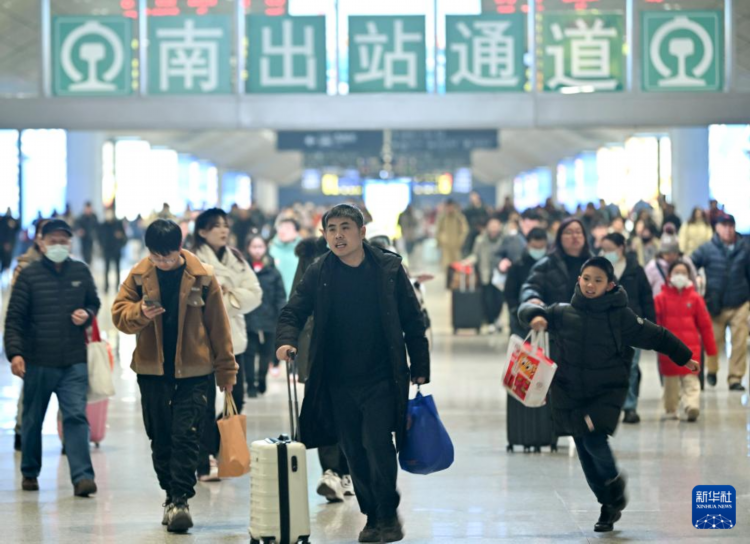 2月17日,旅客在南京火车站下车出站。 新华社发(苏阳 摄)