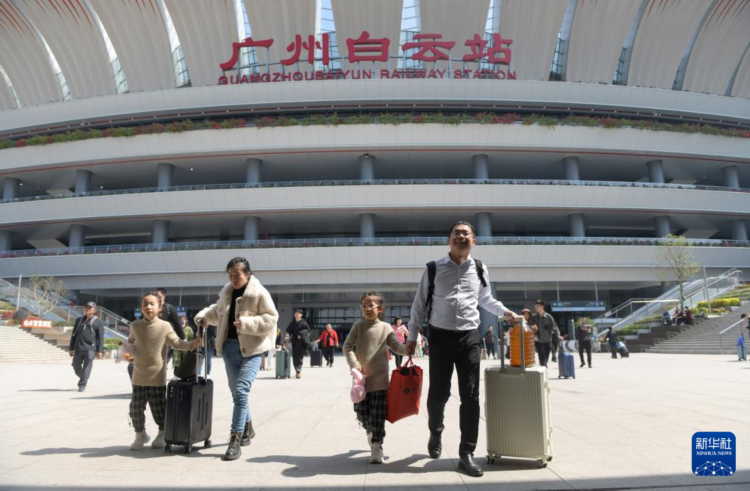2月17日,刚下火车的旅客从广州白云站走出。 新华社记者 卢汉欣 摄
