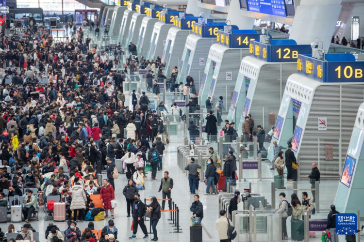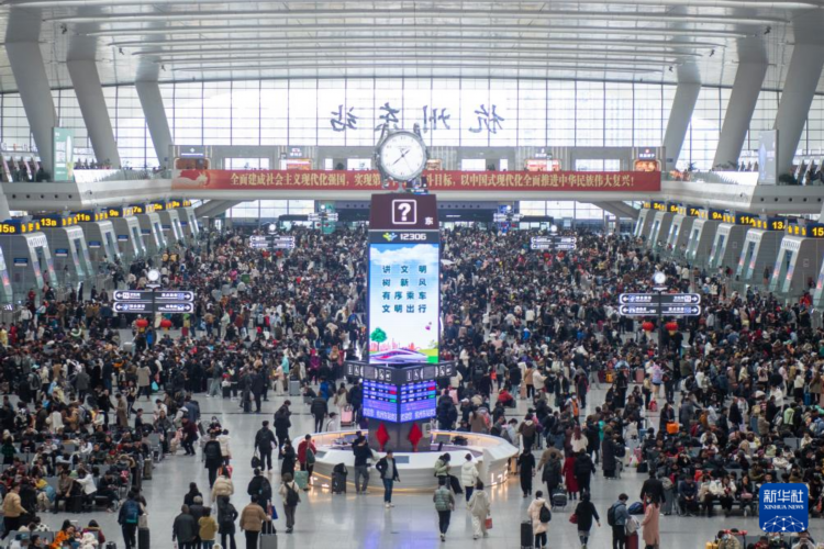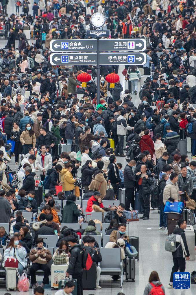 2月17日,旅客在郑州东站候车大厅内候车。 新华社发(苏筱雅 摄)