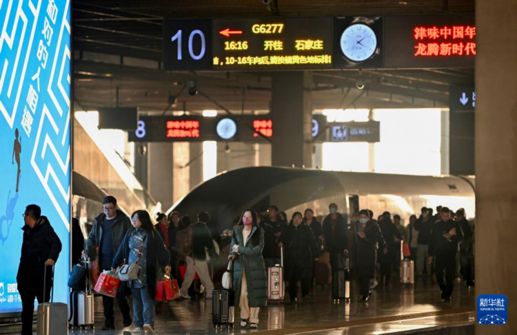 2月17日,旅客乘车到达天津西站。 新华社记者 李然 摄