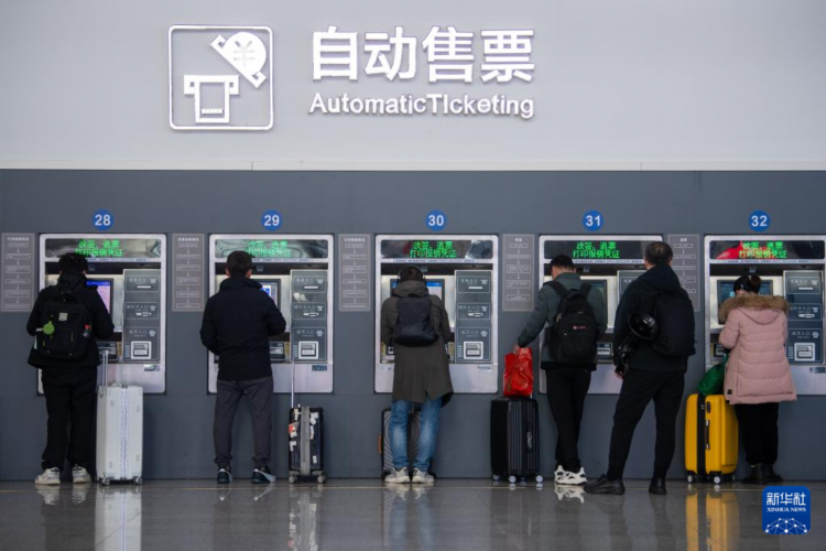 这是2月17日拍摄的杭州东站自动售票处。 新华社记者 江汉 摄