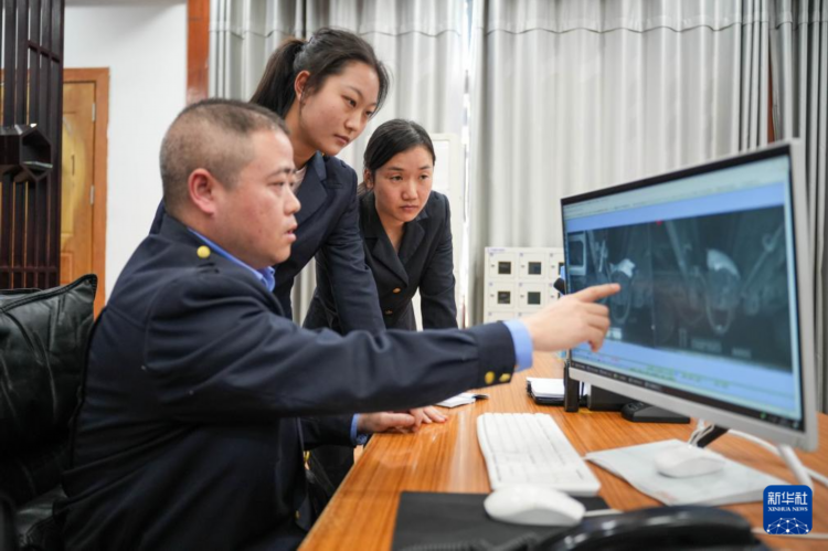 2月18日,检车员在贵阳南车辆段5T运用车间内对图片进行比对检查。 在中国铁路成都局集团有限公司贵阳南车辆段5T运用车间,铁路货车运行故障动态图像监测系统对通过铁轨线路的列车进行高速摄像,图片信息传回地面分析中心后,再由动态检车员查找研判列车故障和安全隐患。5T检车员们在春运期间每天要对约300列货车进行检测,查看约90万张照片,默默守护春运安全。 新华社记者 刘续 摄