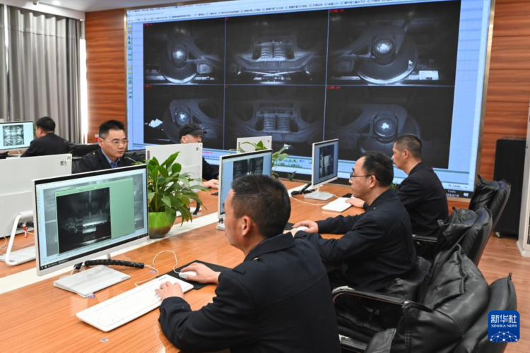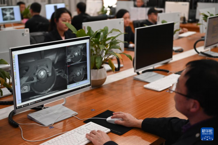 2月18日,在贵阳南车辆段检修车间,工作人员对5T车间发现的车辆故障进行维修。 在中国铁路成都局集团有限公司贵阳南车辆段5T运用车间,铁路货车运行故障动态图像监测系统对通过铁轨线路的列车进行高速摄像,图片信息传回地面分析中心后,再由动态检车员查找研判列车故障和安全隐患。5T检车员们在春运期间每天要对约300列货车进行检测,查看约90万张照片,默默守护春运安全。 新华社记者 刘续 摄