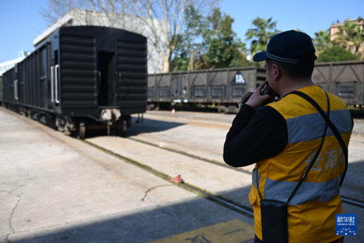 2月18日,在贵阳南车辆段检修车间,一名工作人员指挥已维修好的车辆出库。 在中国铁路成都局集团有限公司贵阳南车辆段5T运用车间,铁路货车运行故障动态图像监测系统对通过铁轨线路的列车进行高速摄像,图片信息传回地面分析中心后,再由动态检车员查找研判列车故障和安全隐患。5T检车员们在春运期间每天要对约300列货车进行检测,查看约90万张照片,默默守护春运安全。 新华社记者 刘续 摄