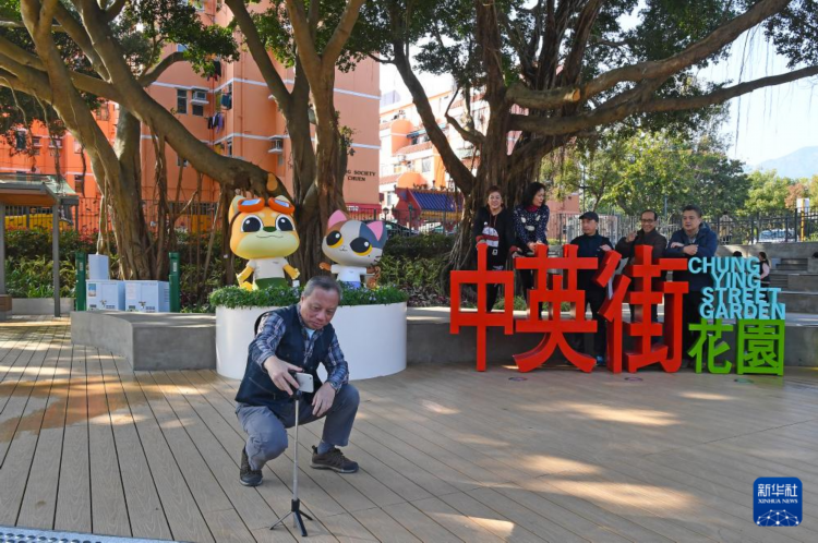 1月25日,游客在香港沙头角中英街花园打卡拍照。 新华社记者 陈铎 摄