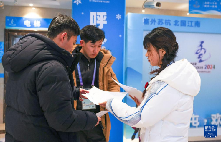 2月18日,来自呼伦贝尔职业技术学院的志愿者阿娜尔(右一)向媒体记者提供赛程表。 2月17日,第十四届全国冬季运动会在内蒙古自治区呼伦贝尔市开幕。在“十四冬”赛场内外,有一群默默奉献的志愿者,他们被大家亲切地称为“小雪团”。各赛区志愿者在接待保障、礼仪、竞赛服务、安全保障、兴奋剂检测、场地器材服务等岗位提供志愿服务,为运动员、观众、媒体、工作人员送去温暖。 据了解,此次“十四冬”志愿者总规模超2000人,他们主要来自各赛区高校,其中按照京蒙共青团协作机制,由北京团市委选派了30名北京冬奥会志愿者支援“十四冬”。 新华社记者 连振 摄