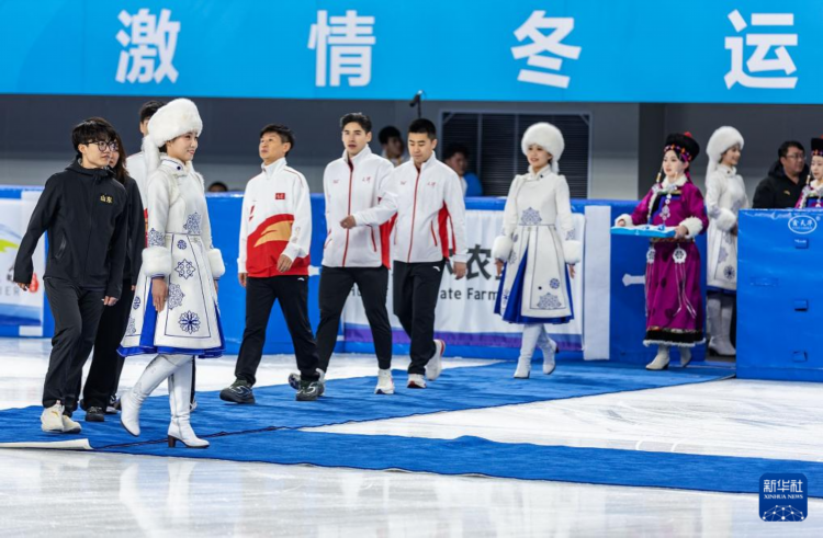 2月18日,志愿者(前)在短道速滑馆内举行的颁奖仪式上引导运动员入场。 2月17日,第十四届全国冬季运动会在内蒙古自治区呼伦贝尔市开幕。在“十四冬”赛场内外,有一群默默奉献的志愿者,他们被大家亲切地称为“小雪团”。各赛区志愿者在接待保障、礼仪、竞赛服务、安全保障、兴奋剂检测、场地器材服务等岗位提供志愿服务,为运动员、观众、媒体、工作人员送去温暖。 据了解,此次“十四冬”志愿者总规模超2000人,他们主要来自各赛区高校,其中按照京蒙共青团协作机制,由北京团市委选派了30名北京冬奥会志愿者支援“十四冬”。 新华社记者 黄伟 摄