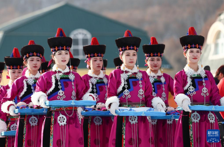 2月18日,礼仪志愿者在扎兰屯赛区颁奖仪式上。 2月17日,第十四届全国冬季运动会在内蒙古自治区呼伦贝尔市开幕。在“十四冬”赛场内外,有一群默默奉献的志愿者,他们被大家亲切地称为“小雪团”。各赛区志愿者在接待保障、礼仪、竞赛服务、安全保障、兴奋剂检测、场地器材服务等岗位提供志愿服务,为运动员、观众、媒体、工作人员送去温暖。 据了解,此次“十四冬”志愿者总规模超2000人,他们主要来自各赛区高校,其中按照京蒙共青团协作机制,由北京团市委选派了30名北京冬奥会志愿者支援“十四冬”。 新华社记者 龙雷 摄