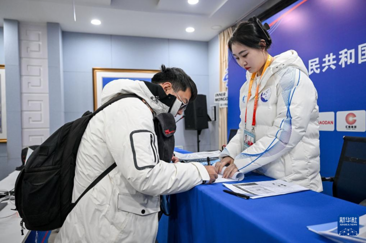 2月18日,来自呼伦贝尔职业技术学院的志愿者陈艳丽(右)登记媒体记者信息。 2月17日,第十四届全国冬季运动会在内蒙古自治区呼伦贝尔市开幕。在“十四冬”赛场内外,有一群默默奉献的志愿者,他们被大家亲切地称为“小雪团”。各赛区志愿者在接待保障、礼仪、竞赛服务、安全保障、兴奋剂检测、场地器材服务等岗位提供志愿服务,为运动员、观众、媒体、工作人员送去温暖。 据了解,此次“十四冬”志愿者总规模超2000人,他们主要来自各赛区高校,其中按照京蒙共青团协作机制,由北京团市委选派了30名北京冬奥会志愿者支援“十四冬”。 新华社记者 连振 摄