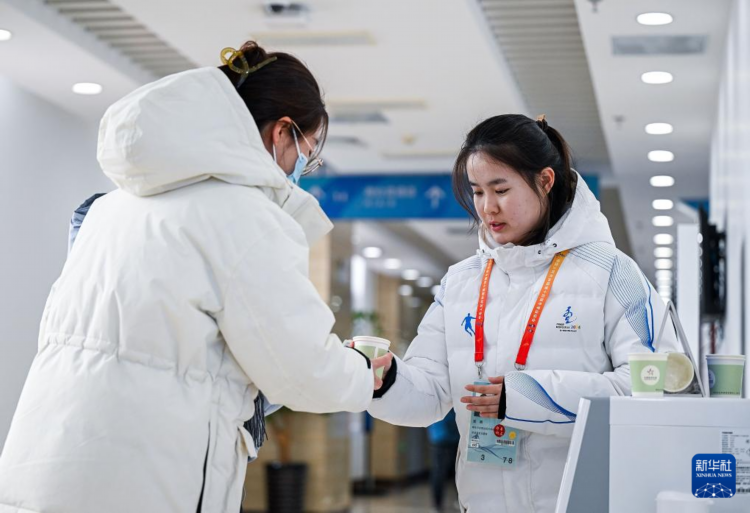 2月18日,来自呼伦贝尔职业技术学院的志愿者张娜(右)为观看短道速滑比赛的观众递上热水。 2月17日,第十四届全国冬季运动会在内蒙古自治区呼伦贝尔市开幕。在“十四冬”赛场内外,有一群默默奉献的志愿者,他们被大家亲切地称为“小雪团”。各赛区志愿者在接待保障、礼仪、竞赛服务、安全保障、兴奋剂检测、场地器材服务等岗位提供志愿服务,为运动员、观众、媒体、工作人员送去温暖。 据了解,此次“十四冬”志愿者总规模超2000人,他们主要来自各赛区高校,其中按照京蒙共青团协作机制,由北京团市委选派了30名北京冬奥会志愿者支援“十四冬”。 新华社记者 连振 摄