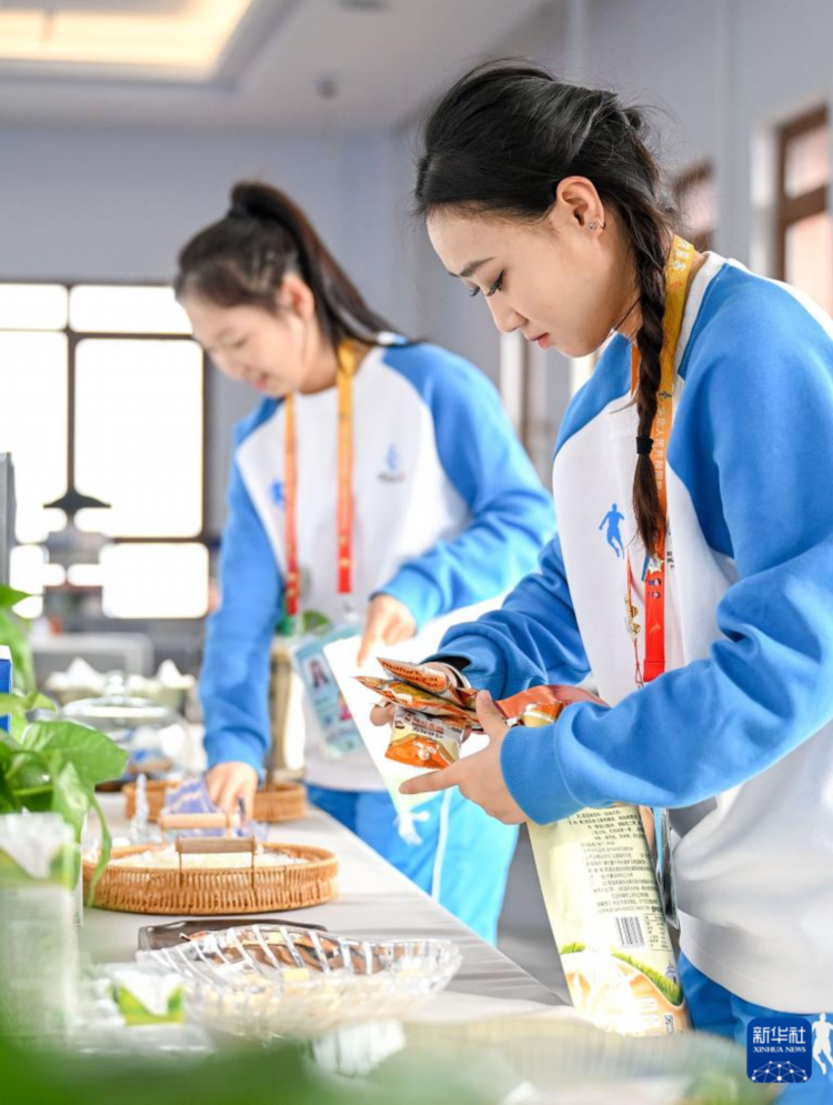 2月19日,来自呼伦贝尔职业学院的志愿者刘瑞旸在媒体中心休息区整理茶点。 2月17日,第十四届全国冬季运动会在内蒙古自治区呼伦贝尔市开幕。在“十四冬”赛场内外,有一群默默奉献的志愿者,他们被大家亲切地称为“小雪团”。各赛区志愿者在接待保障、礼仪、竞赛服务、安全保障、兴奋剂检测、场地器材服务等岗位提供志愿服务,为运动员、观众、媒体、工作人员送去温暖。 据了解,此次“十四冬”志愿者总规模超2000人,他们主要来自各赛区高校,其中按照京蒙共青团协作机制,由北京团市委选派了30名北京冬奥会志愿者支援“十四冬”。 新华社记者 连振 摄