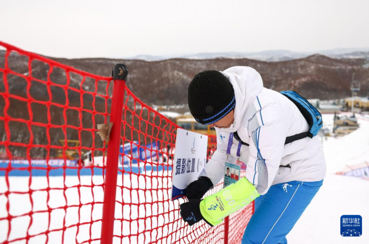 2月18日,在扎兰屯赛区,志愿者在自由式滑雪雪上技巧比赛场地固定摄影位置标牌。 2月17日,第十四届全国冬季运动会在内蒙古自治区呼伦贝尔市开幕。在“十四冬”赛场内外,有一群默默奉献的志愿者,他们被大家亲切地称为“小雪团”。各赛区志愿者在接待保障、礼仪、竞赛服务、安全保障、兴奋剂检测、场地器材服务等岗位提供志愿服务,为运动员、观众、媒体、工作人员送去温暖。 据了解,此次“十四冬”志愿者总规模超2000人,他们主要来自各赛区高校,其中按照京蒙共青团协作机制,由北京团市委选派了30名北京冬奥会志愿者支援“十四冬”。 新华社记者 王楷焱 摄