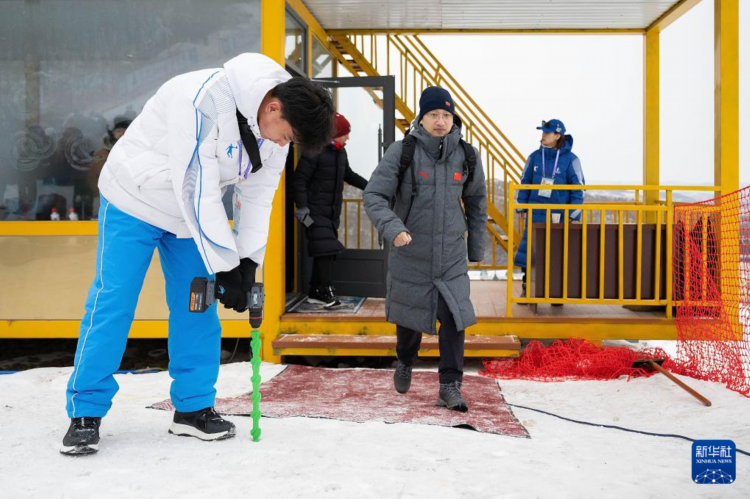 2月18日,在扎兰屯赛区,竞赛服务志愿者(左一)在裁判房前的雪地上钻孔防滑。 2月17日,第十四届全国冬季运动会在内蒙古自治区呼伦贝尔市开幕。在“十四冬”赛场内外,有一群默默奉献的志愿者,他们被大家亲切地称为“小雪团”。各赛区志愿者在接待保障、礼仪、竞赛服务、安全保障、兴奋剂检测、场地器材服务等岗位提供志愿服务,为运动员、观众、媒体、工作人员送去温暖。 据了解,此次“十四冬”志愿者总规模超2000人,他们主要来自各赛区高校,其中按照京蒙共青团协作机制,由北京团市委选派了30名北京冬奥会志愿者支援“十四冬”。 新华社记者 谢剑飞 摄