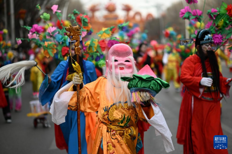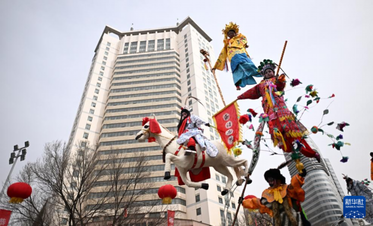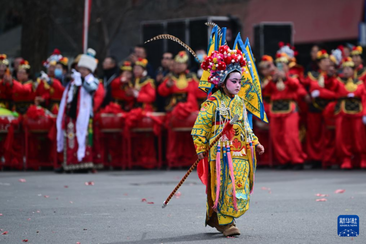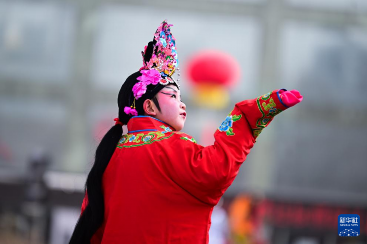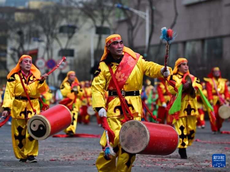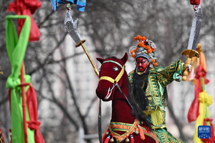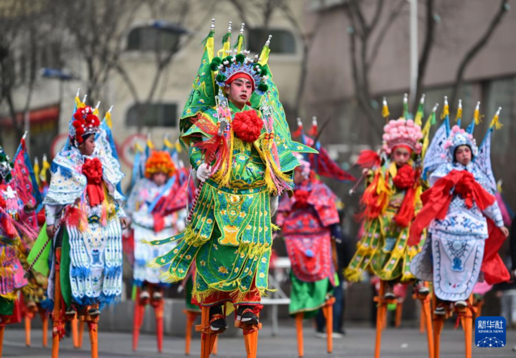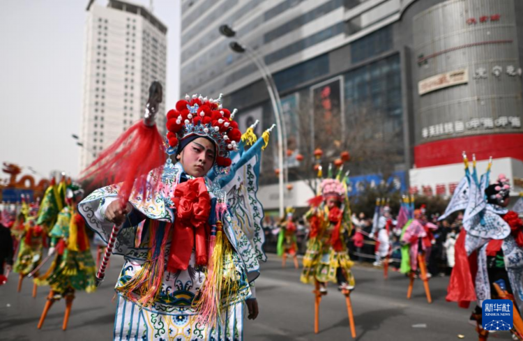 2月19日,在青海省西宁市,演员在社火巡游活动中表演。 当日是农历正月初十,青海省西宁市举办优秀社火集中巡游活动,超过2000名演员参加巡游表演,为市民群众带来一场节日文化盛宴。 新华社记者 张龙 摄