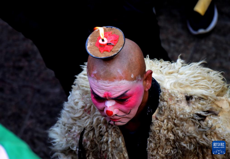 2月25日,浚县民间社火队演员在古庙会上进行滑稽表演。 农历正月十六,在河南省浚县举行的正月传统古庙会上,数十支由当地群众组成的社火表演团队轮番表演抬阁、舞狮、踩高跷等社火演出。据介绍,河南浚县正月古庙会已有1600多年历史,被誉为民俗文化的“活化石”。 新华社记者 朱祥 摄