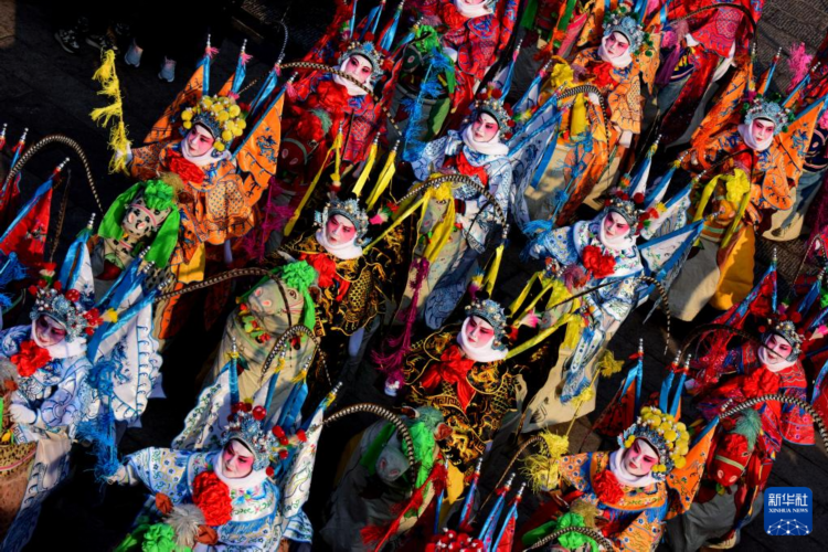 2月25日,浚县民间社火团体在古庙会上表演。 农历正月十六,在河南省浚县举行的正月传统古庙会上,数十支由当地群众组成的社火表演团队轮番表演抬阁、舞狮、踩高跷等社火演出。据介绍,河南浚县正月古庙会已有1600多年历史,被誉为民俗文化的“活化石”。 新华社发(张婷媛摄)