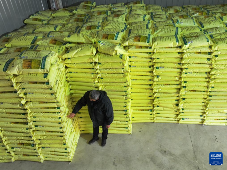 2月25日,在湖南省益阳市赫山区农田谋士水稻专业合作社,工作人员在查看复合肥料储备情况(无人机照片)。 近日,湖南省益阳市赫山区积极做好农机检修和农资调配、储备等工作,助力春耕备耕,为接下来的春耕生产提供有力保障。 新华社记者 陈泽国 摄 |