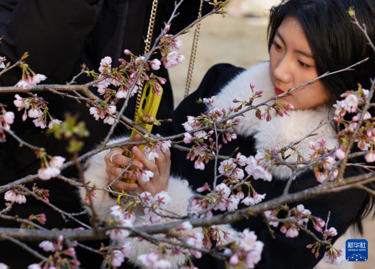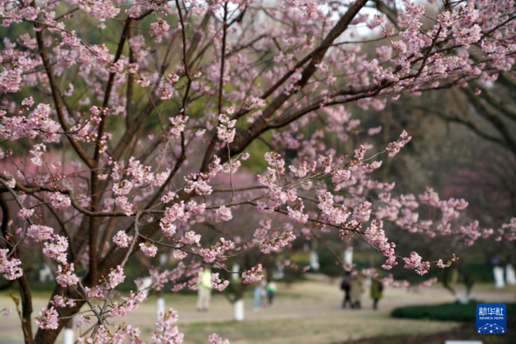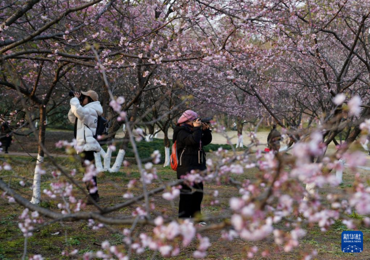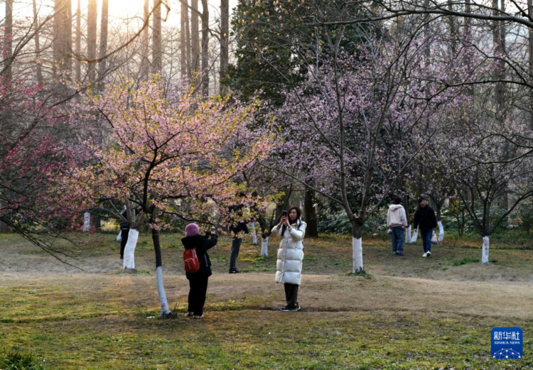 2月27日,游客在杭州植物园观赏樱花。 日前,杭州植物园部分早樱品种渐次开放,吸引不少市民游客前来赏花。 新华社记者 韩传号 摄