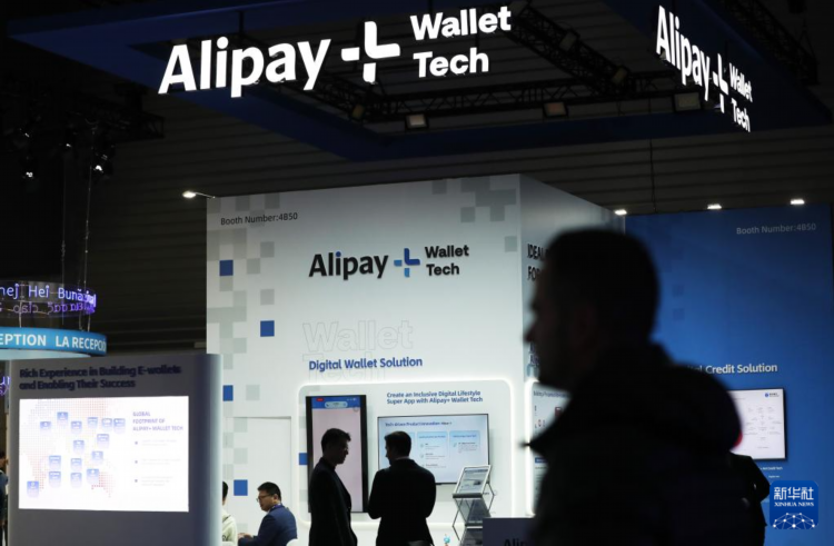 2月26日,在西班牙巴塞罗那举行的2024年世界移动通信大会上,人们参观Alipay展台。 2024年世界移动通信大会正在西班牙巴塞罗那举行。今年大会有约2400家参展商和1100名演讲者参会,其中包括中国移动、中国电信、华为、中兴、联想、小米、科大讯飞等众多中国企业。 新华社记者 高静 摄
