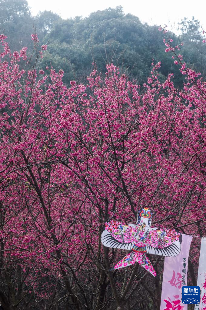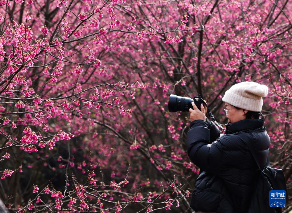 3月2日,游客在米积村樱花林中拍照。 当日,2024临安樱花旅游月在杭州临安区玲珑街道米积村正式开启。米积村10万株红樱在山间绽放,延绵数公里,构成了一幅如梦如幻的春日画卷,春日雅集、繁花市集、骑马观花、春日祈福等乡村旅游特色活动也与万株樱花一起迎接各地游客。 2012年米积村开始种植中国红垂樱,如今已经形成了近千亩、10万株樱花林。“山深未必得春迟,处处山樱花压枝。”绚烂的樱花林让米积村成为“踏春胜地”,同时带动文旅产业提振升级。 新华社记者 徐昱 摄