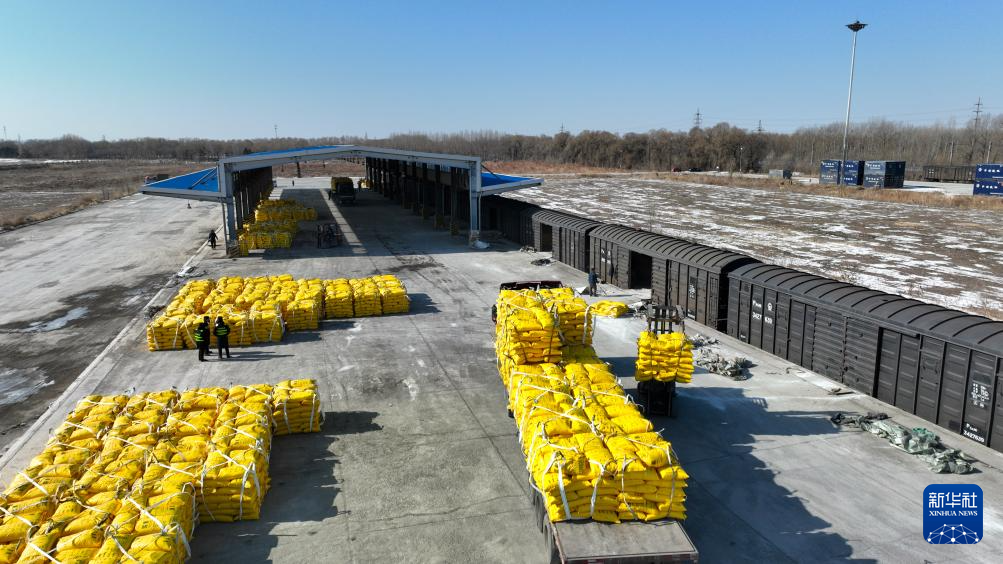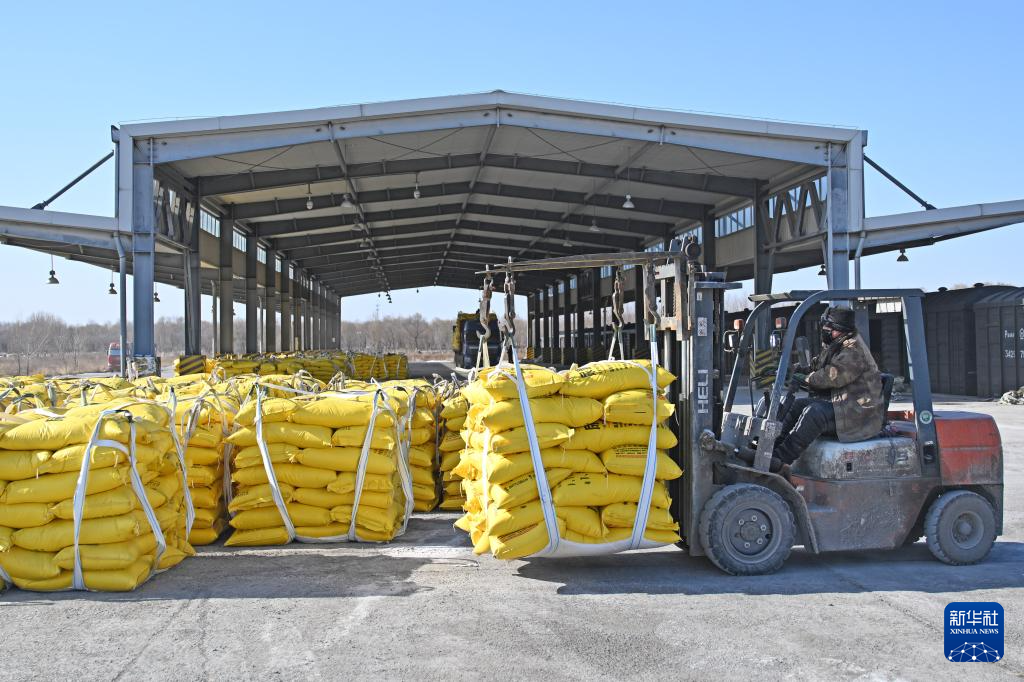 3月1日,在铁岭物流园,中国铁路沈阳局集团有限公司加大卸车组织力度,确保化肥原料物资尽快运输。 近日,辽宁省铁岭县积极开展春耕备耕物资的运输、生产及对农民培训工作,为新一年的农业生产打好基础。 新华社记者 杨青 摄