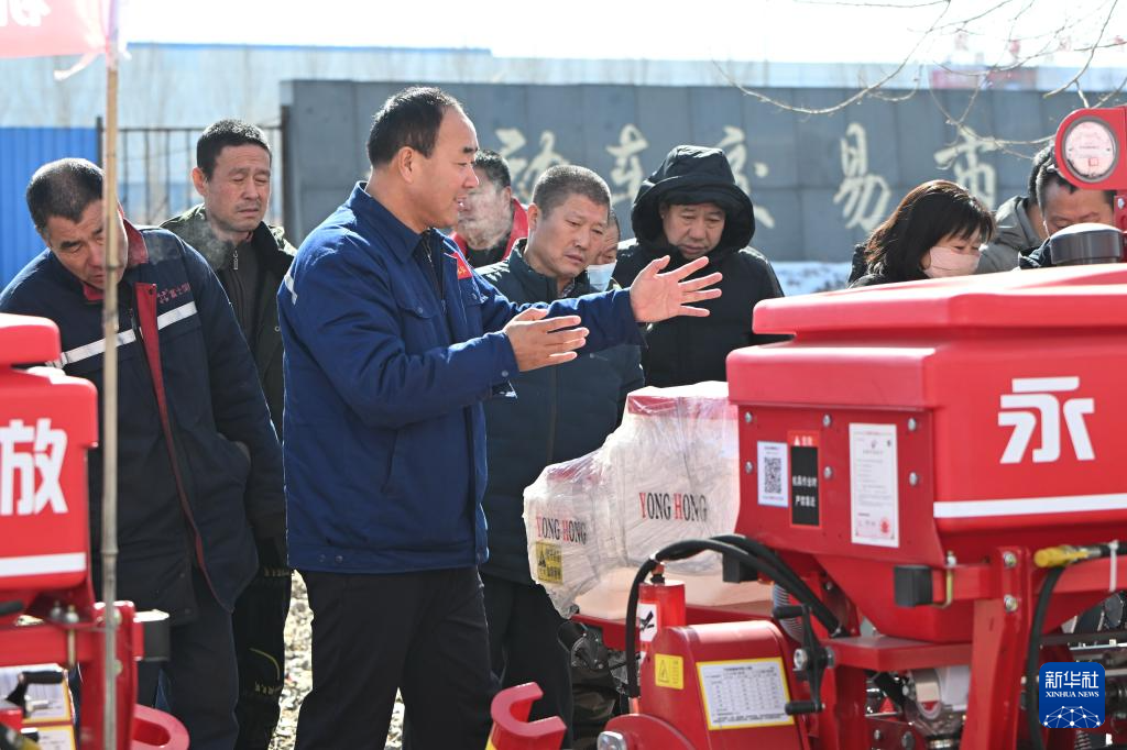 3月1日,在铁岭县一农机销售点,农机厂家工作人员对农民进行农机使用培训。 近日,辽宁省铁岭县积极开展春耕备耕物资的运输、生产及对农民培训工作,为新一年的农业生产打好基础。 新华社记者 杨青 摄