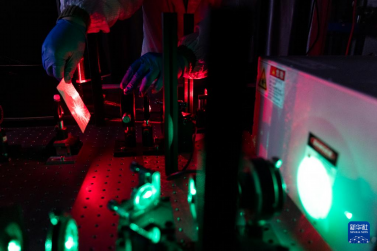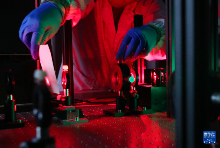 赵苗博士在上海光机所光学实验室调试实验设备(2月29日摄)。