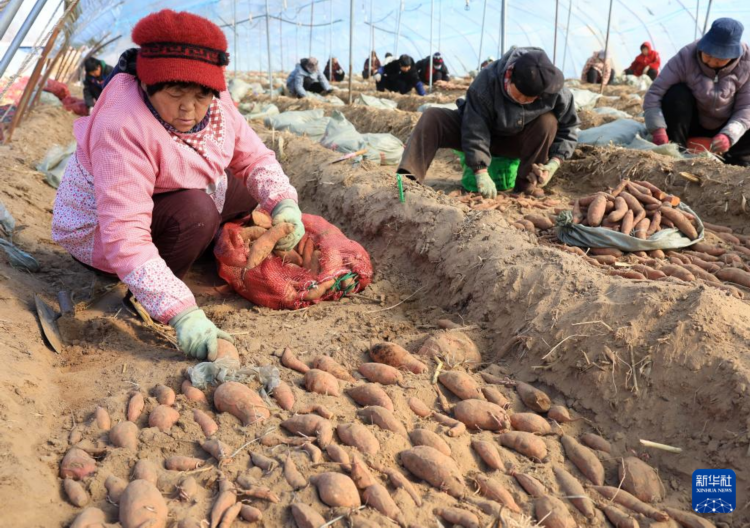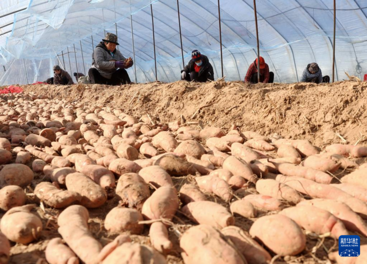 3月3日,河北省晋州市总十庄镇东钓鱼台村红薯种植专业合作社的社员在往育苗床上摆放红薯种薯。 近日,随着气温回升,河北晋州的农民抢抓农时,进行红薯育苗工作,田间呈现出一派繁忙的景象。 新华社记者 杨世尧 摄