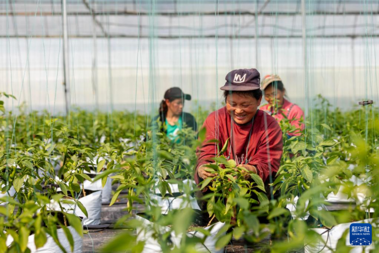 3月4日,村民在罗甸县逢亭镇粤港澳大湾区蔬菜保供基地管护辣椒。 初春时节,在贵州省黔南布依族苗族自治州罗甸县逢亭镇粤港澳大湾区蔬菜保供基地,村民们开展育苗、栽种、管护、施肥等农事活动,一派早春人勤的繁忙景象。 新华社发(范晖 摄)