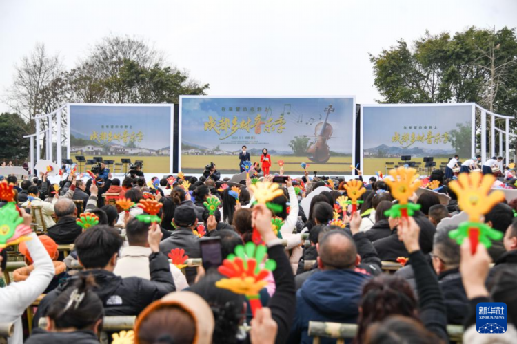 3月5日,在成都市温江区万春镇,当地群众在观看成都乡村音乐季开幕式。 当日,“在希望的田野上”成都乡村音乐季在成都市温江区正式启幕,活动将从2024年3月持续到2025年2月。 据了解,此次音乐季将以四季为时间轴线,围绕“花开中国”“大地飞歌”“诗意田园”“雪兆丰年”等主题,选取二十四节气中的重要时间点,开展近百场乡村音乐会,将文化惠民活动带到田间地头。 新华社记者 王曦 摄