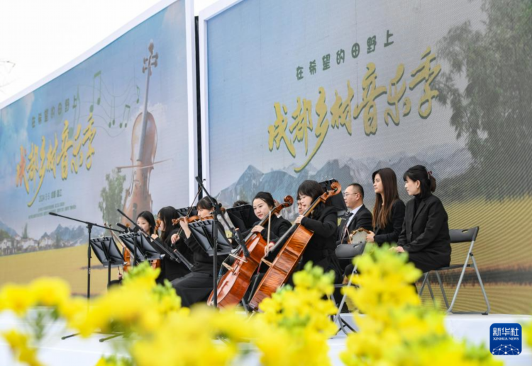 3月5日,在成都市温江区万春镇,交响乐团演员在成都乡村音乐季开幕式上表演。 当日,“在希望的田野上”成都乡村音乐季在成都市温江区正式启幕,活动将从2024年3月持续到2025年2月。 据了解,此次音乐季将以四季为时间轴线,围绕“花开中国”“大地飞歌”“诗意田园”“雪兆丰年”等主题,选取二十四节气中的重要时间点,开展近百场乡村音乐会,将文化惠民活动带到田间地头。 新华社记者 王曦 摄