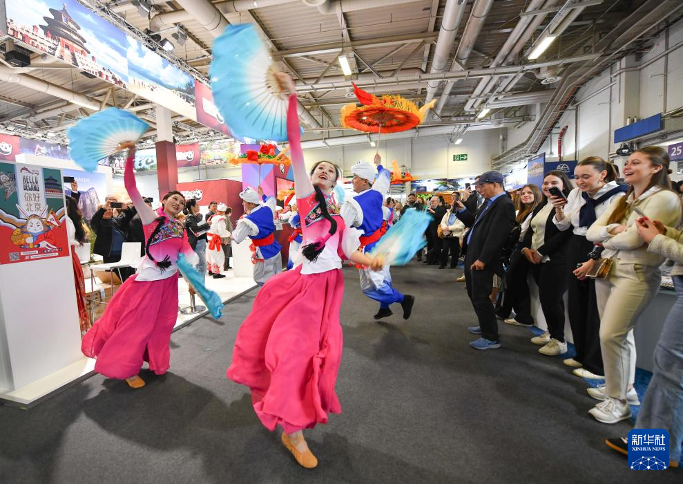 3月5日,来自中国陕西省的演员在德国柏林举行的柏林国际旅游交易会中国展区表演秧歌。