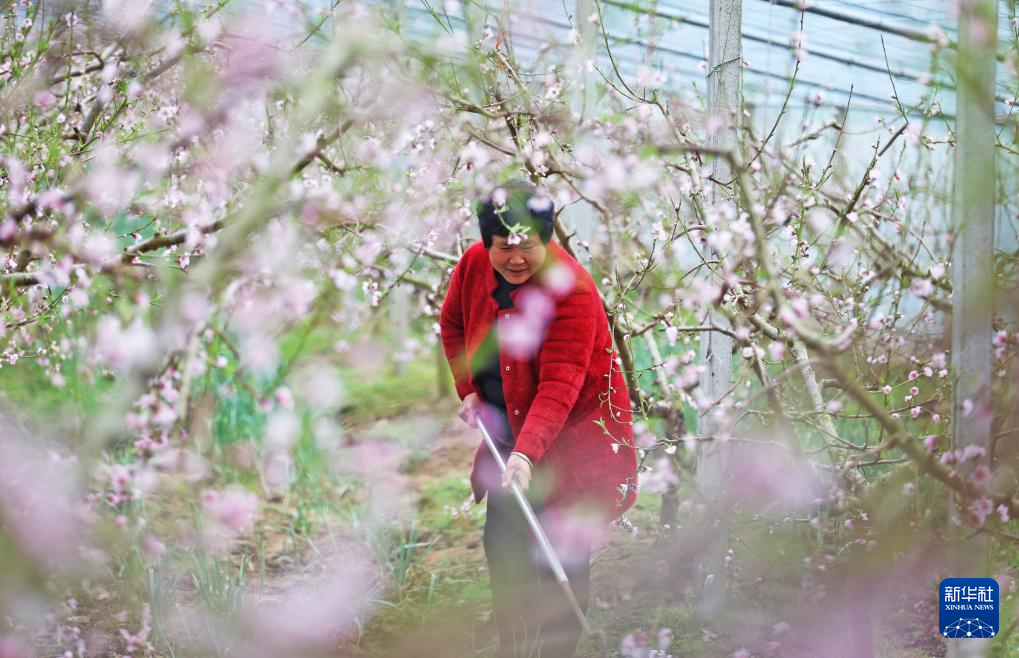 3月7日,山东省临沂市郯城县郯城街道洪福寺村村民在油桃大棚里劳作。 近日,随着气温转暖,各地陆续进入春耕时节,田间地头一片忙碌景象。 新华社发(张春雷摄)pagebreak