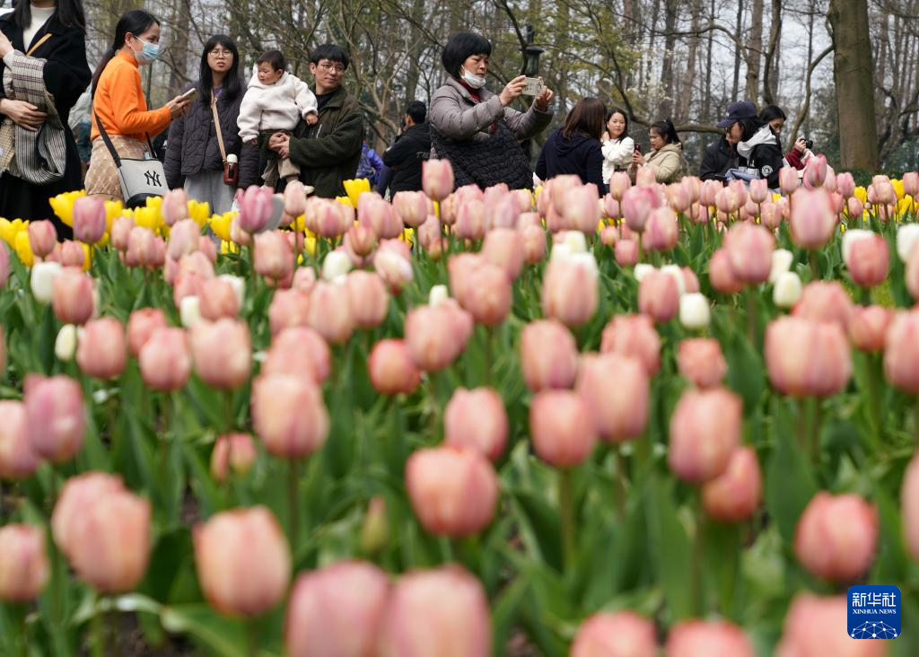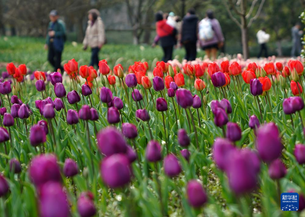 3月11日,人们在杭州太子湾公园观赏郁金香。 近期,杭州太子湾公园里的郁金香早花品种已陆续开放,吸引市民、游客前来观赏。 新华社记者 韩传号 摄pagebreak