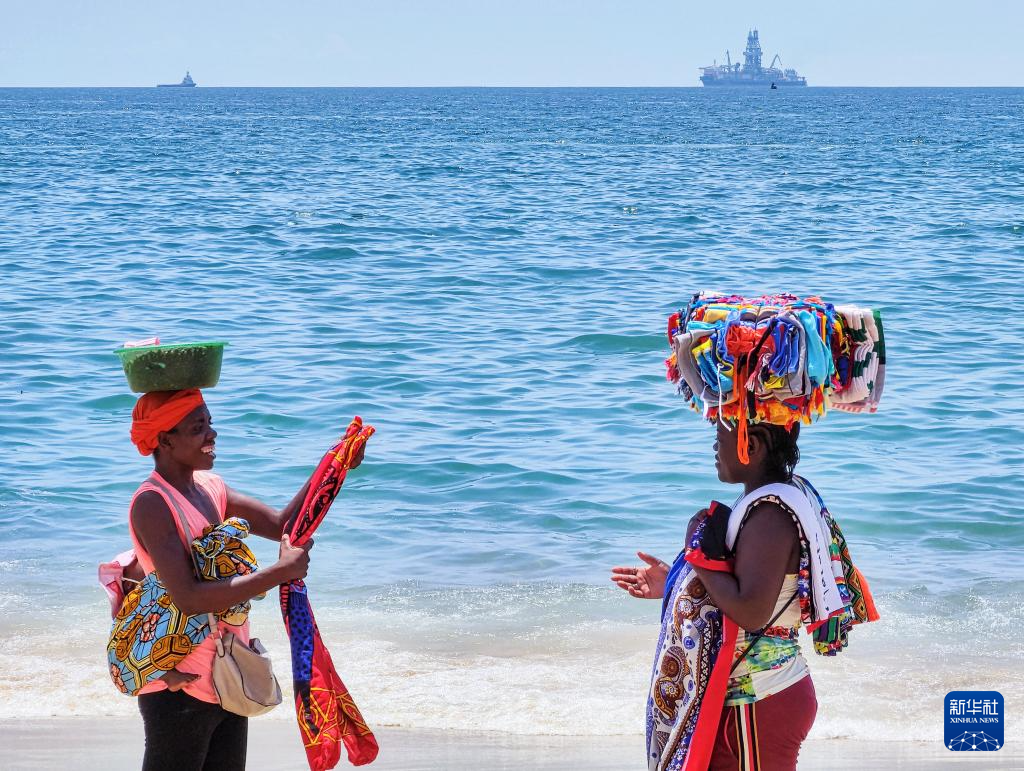 3月9日,在安哥拉首都罗安达,两名售卖饰品的商贩在海边交谈。