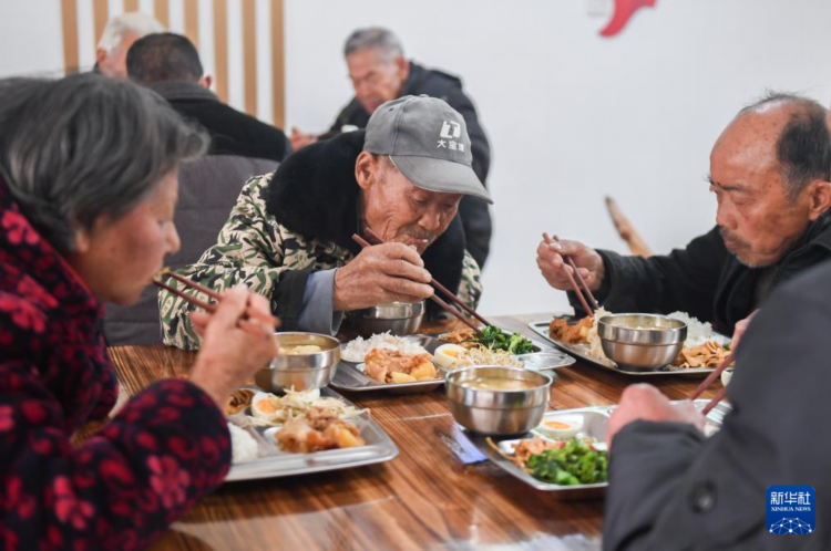 3月13日,在湖北省荆门市东宝区石桥驿镇上泉村“幸福里食堂”,老人们就座用餐。 近年来,湖北省荆门市积极探索老年助餐新模式,通过政府购买服务、合作共建、委托开办等方式,打造“餐饮企业+幸福里食堂”模式,为老年人提供价格优惠的老年餐。目前,荆门市中心城区基本实现社区“幸福里食堂”全覆盖,惠及众多老年人。 新华社记者 杜子璇 摄