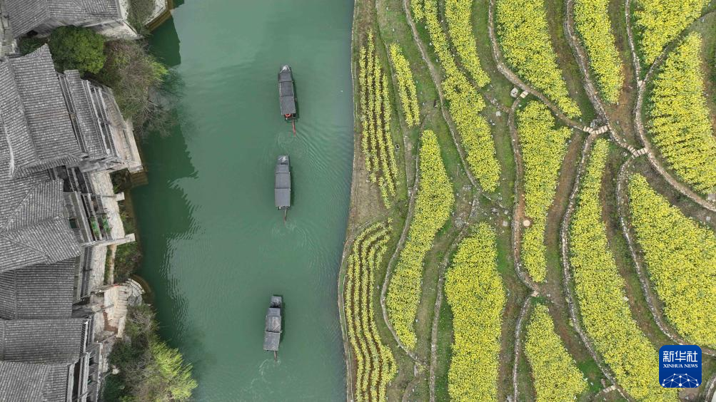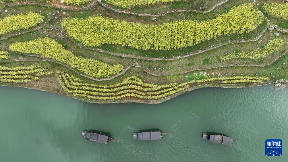 3月14日,游客在贵州省遵义市播州区乌江寨景区乘船游览(无人机照片)。 春日里,贵州省遵义市播州区乌江寨吸引许多游客前来游览,乐享春光。据悉,乌江寨国际旅游度假区依托恬静的山水自然环境和浓厚的黔北村寨民俗,集观光、休闲、度假、会展为一体,成为黔北旅游的一道美丽风景。 新华社发(徐浪花 摄)pagebreak