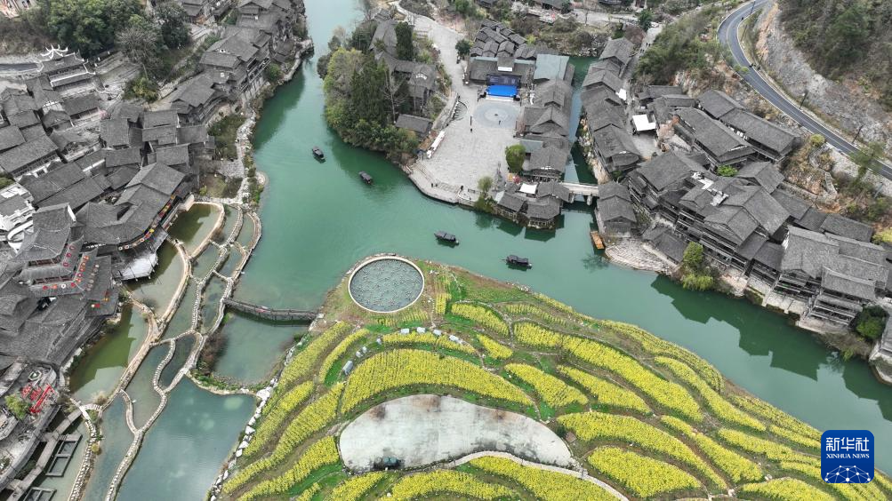 3月14日拍摄的贵州省遵义市播州区乌江寨景区一景(无人机照片)。 春日里,贵州省遵义市播州区乌江寨吸引许多游客前来游览,乐享春光。据悉,乌江寨国际旅游度假区依托恬静的山水自然环境和浓厚的黔北村寨民俗,集观光、休闲、度假、会展为一体,成为黔北旅游的一道美丽风景。 新华社记者 杨楹 摄pagebreak