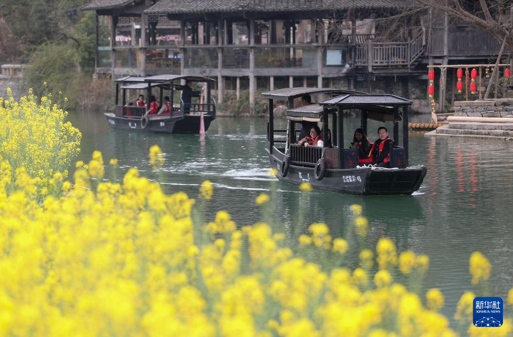 3月14日,游客在贵州省遵义市播州区乌江寨景区游览。 春日里,贵州省遵义市播州区乌江寨吸引许多游客前来游览,乐享春光。据悉,乌江寨国际旅游度假区依托恬静的山水自然环境和浓厚的黔北村寨民俗,集观光、休闲、度假、会展为一体,成为黔北旅游的一道美丽风景。 新华社记者 杨楹 摄pagebreak