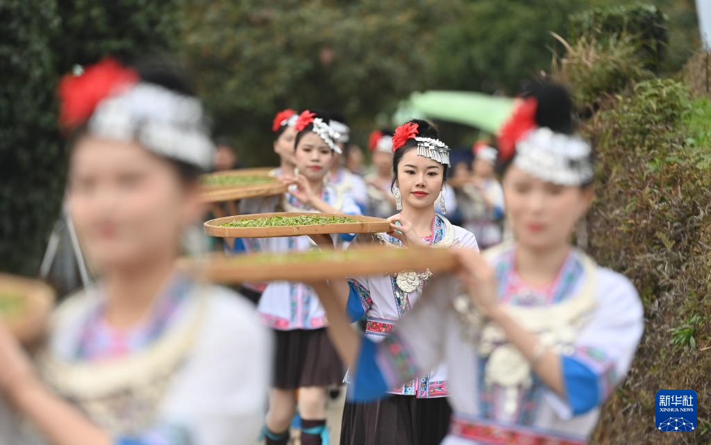 3月14日,在柳州市三江侗族自治县八江镇布央村,村民在展示茶艺。 当日,2024年中国三江早春茶大会暨广西柳州三江茶文化活动在三江侗族自治县八江镇布央村开幕。在为期2天的会期中,当地将举办春茶开采仪式、茶文化展演、产销对接签约、技术交流等活动,致力提升三江茶叶品牌,推动茶产业高质量发展。 新华社记者 黄孝邦 摄pagebreak
