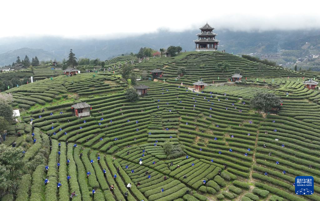 3月14日,柳州市三江侗族自治县八江镇布央村的村民在采茶(无人机照片)。 当日,2024年中国三江早春茶大会暨广西柳州三江茶文化活动在三江侗族自治县八江镇布央村开幕。在为期2天的会期中,当地将举办春茶开采仪式、茶文化展演、产销对接签约、技术交流等活动,致力提升三江茶叶品牌,推动茶产业高质量发展。 新华社记者 黄孝邦 摄 |