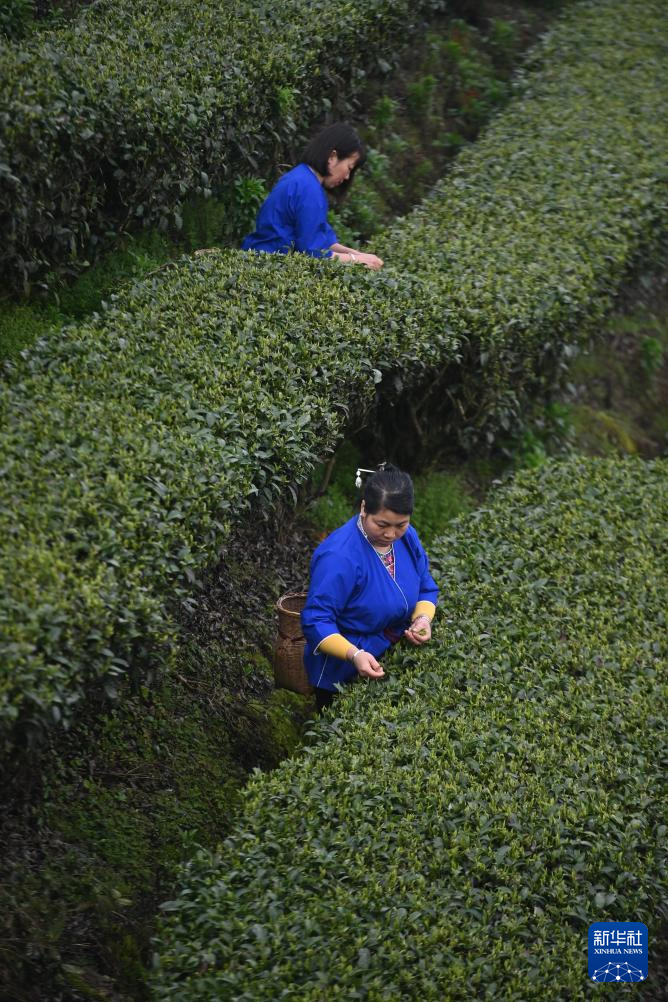3月14日,柳州市三江侗族自治县八江镇布央村的村民在采茶。 当日,2024年中国三江早春茶大会暨广西柳州三江茶文化活动在三江侗族自治县八江镇布央村开幕。在为期2天的会期中,当地将举办春茶开采仪式、茶文化展演、产销对接签约、技术交流等活动,致力提升三江茶叶品牌,推动茶产业高质量发展。 新华社记者 黄孝邦 摄pagebreak