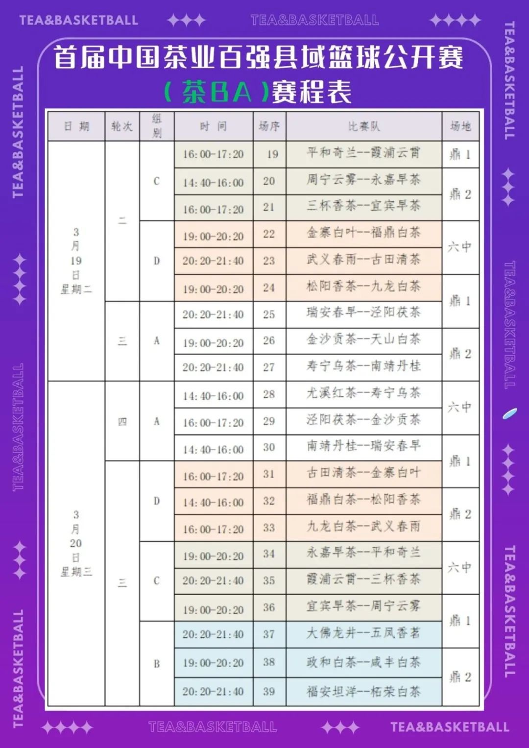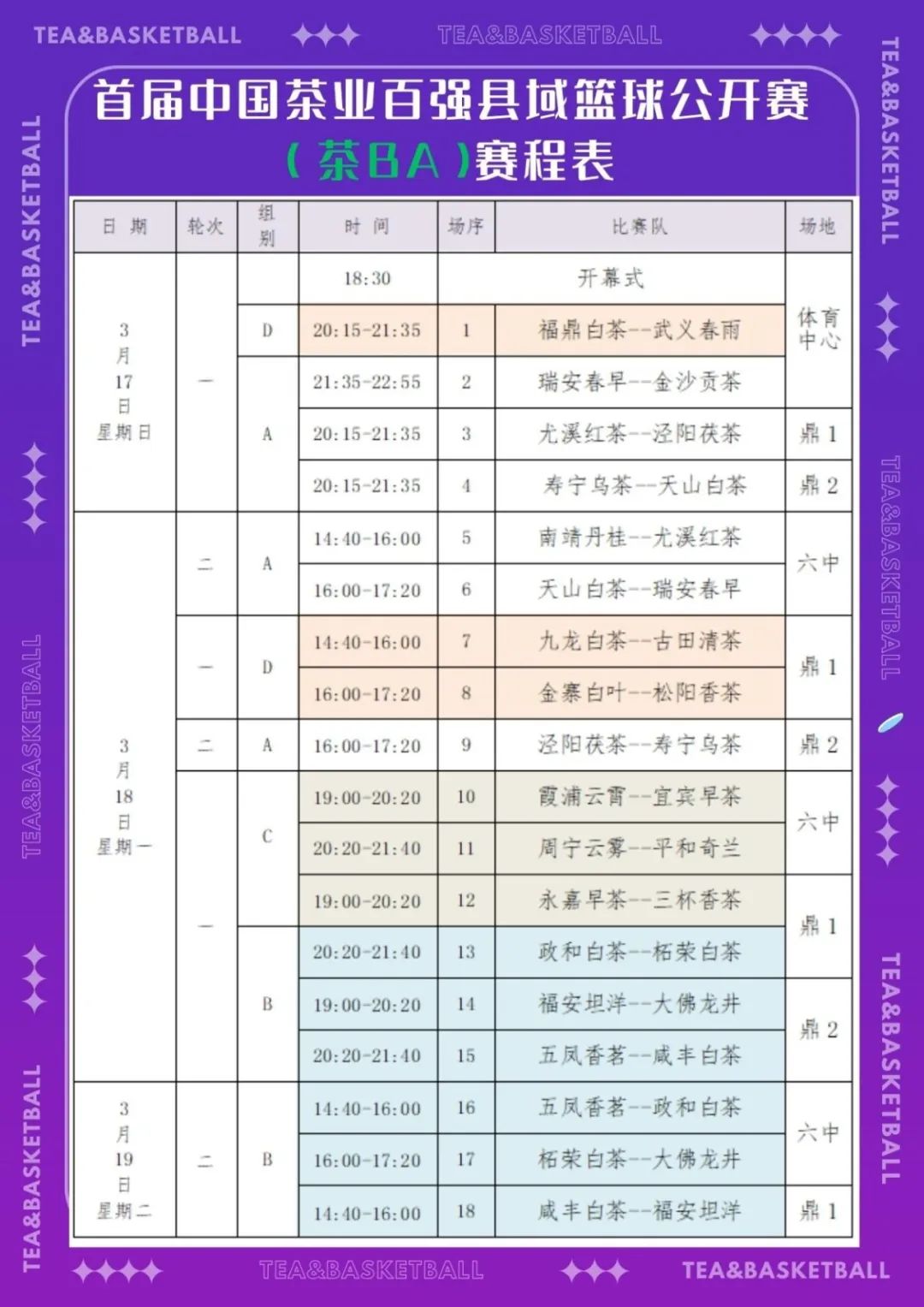 3月17日,首届中国茶业百强县域篮球公开赛(茶BA)将在福鼎开幕。届时,将为全国人民带来一场茶与篮球竞技的盛大嘉年华!