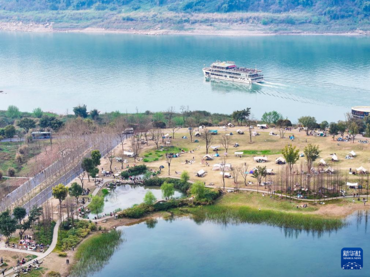 3月16日,游客在重庆广阳岛游览、休闲(无人机照片)。新华社记者 王全超 摄