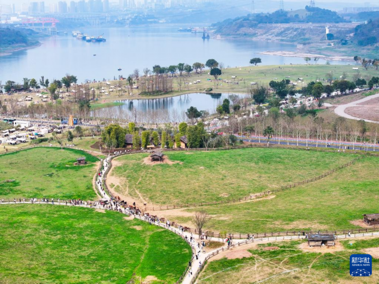 3月16日,游客在重庆广阳岛胜利草场游览、拍照。新华社记者 王全超 摄